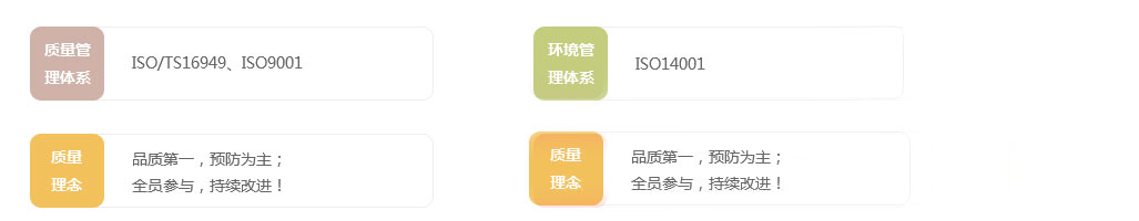 公司嚴(yán)格按照ISO/TS16949質(zhì)量管理體系要求,以"滿足顧客需求"為導(dǎo)向,運(yùn)用五個(gè)核心工具手冊(cè),利用質(zhì)量方針、質(zhì)量目標(biāo)、監(jiān)督審核、數(shù)據(jù)分析,來持續(xù)改進(jìn)和驗(yàn)證質(zhì)量管理體系的有效性。